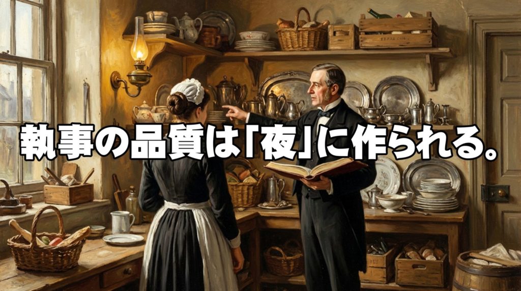執事の品質は「夜」に作られる。お客様の信頼を守り抜くための、プロフェッショナルの「隠れた12時間」 一流の執事と、そうでない執事。 その決定的な差は、どこで生まれるのでしょうか。 現場での立ち振る舞い…