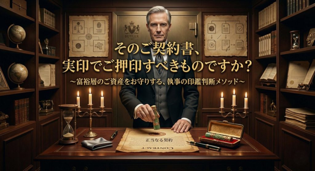 そのご契約書、実印でご押印すべきものですか?富裕層のご資産をお守りする、執事の印鑑判断メソッド —— 朱肉の跡が決定づけるご契約の重みと、法的な防衛線の構築 —— 【エグゼクティブ・サマリー】 富裕層…
